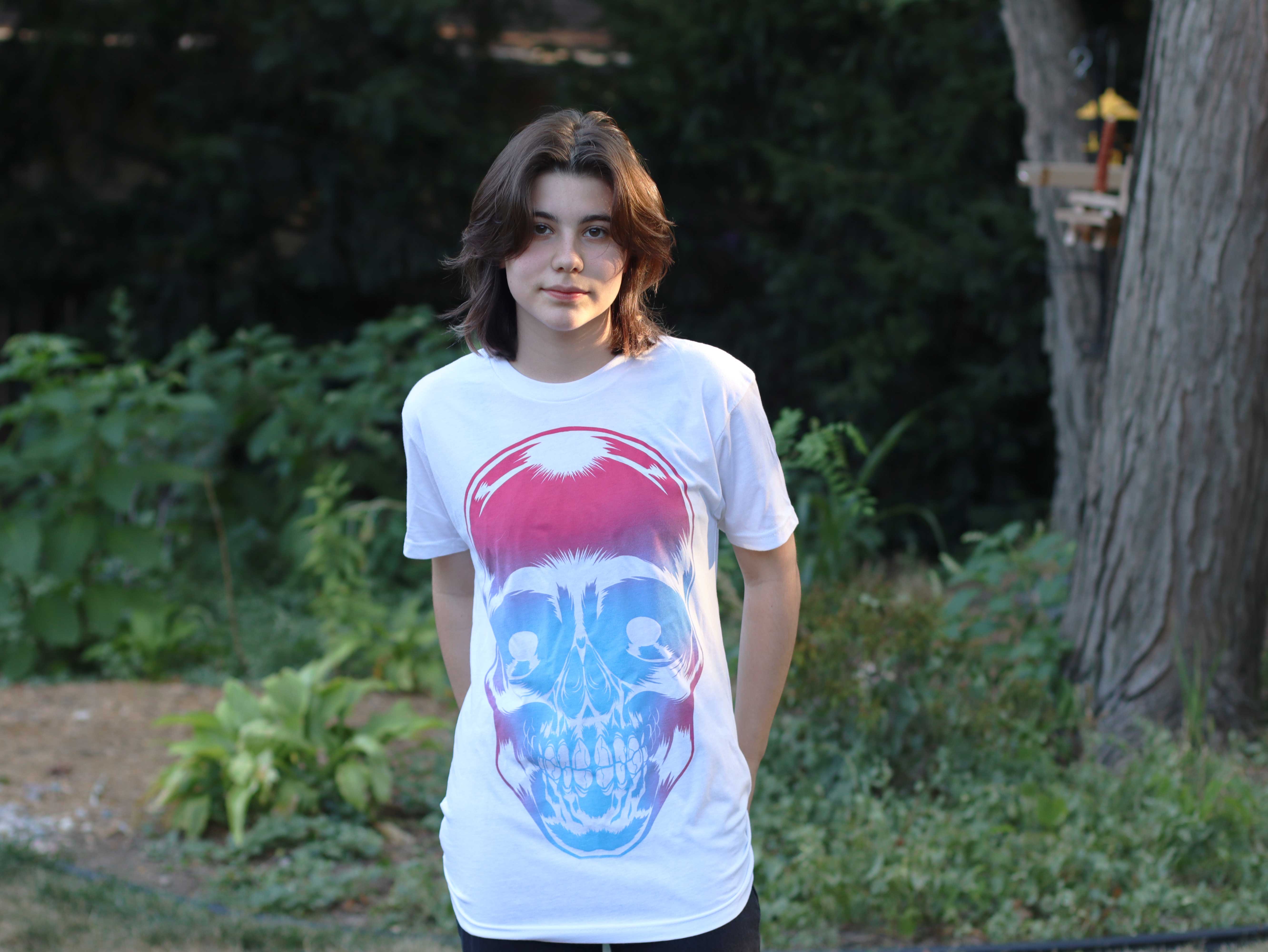 It’s an extra large water-based ink print on a super soft Next Level T-shirt.